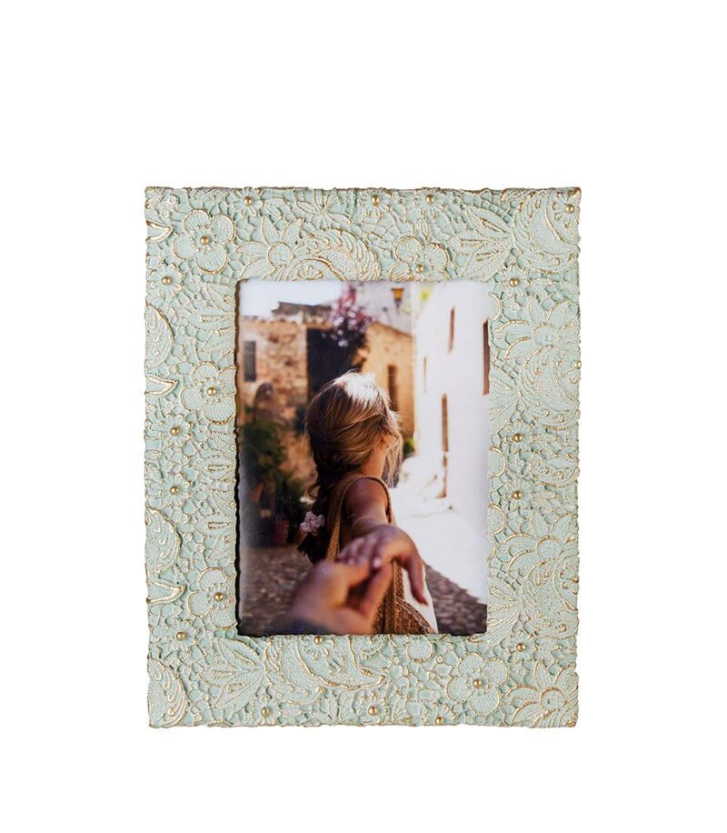 Portafoto rettangolare in resina con decoro floreale effetto pizzo. Una finestra sui ricordi più importanti, per vestire di emozioni la casa
