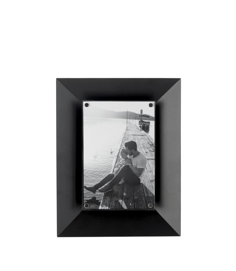Portafoto rettangolare in acciaio nero con immagine in risalto. Perfetto per gli amanti del design minimal.