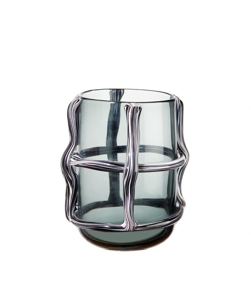 Vaso alto in vetro. Il decoro in rilievo dall'effetto retato, lo rende perfetto per completare l'arredamento di un ambiente dal design moderno. Da abbinare al vaso basso coordinato dell'ispirazione Urban per un angolo floreale d'impatto.